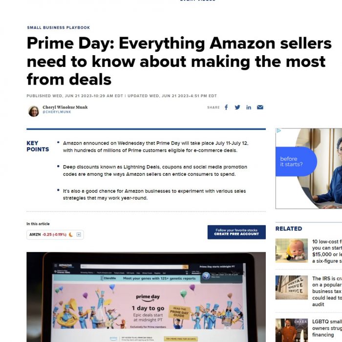 Yes, we work with a lot of consumer brands and products, but we also pitch entrepreneurial stories and clients as experts in their industries. We introduced the editors at CNBC to Amazon expert Phil Masiello, and they quoted him in a story on the new changes to Prime Day.