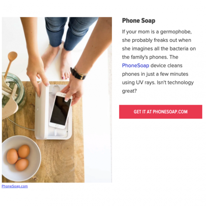 We love getting our clients weird and unique placements and this one is no different. HuffPost named the PhoneSoap one of 25 Weird Mother’s Day gifts. The unique article was also picked up by Yahoo!