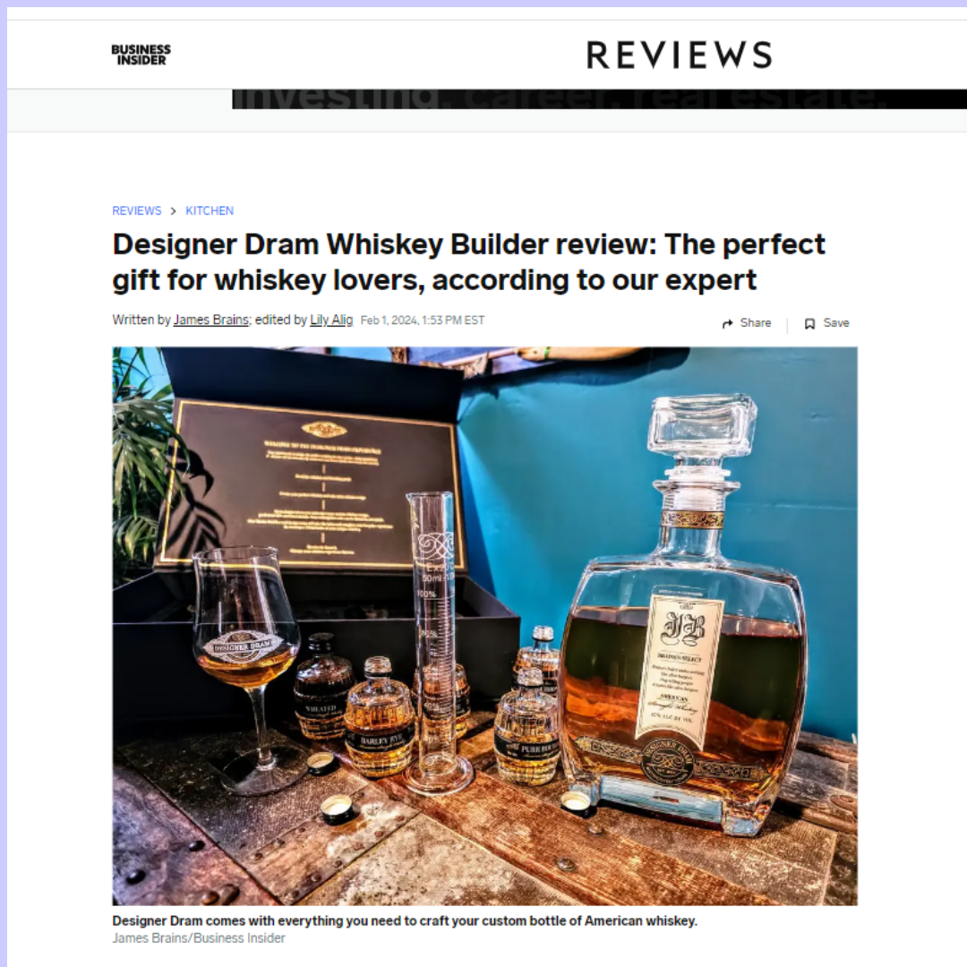 Designer Dram is the ‘perfect gift for whiskey lovers’ according to an outstanding review in Business Insider. The website published a lengthy review on the company that allows you to build your own custom whiskeys. The writer talks about how “The bottle screams luxury,” and says “The actual whiskey was outstanding.”