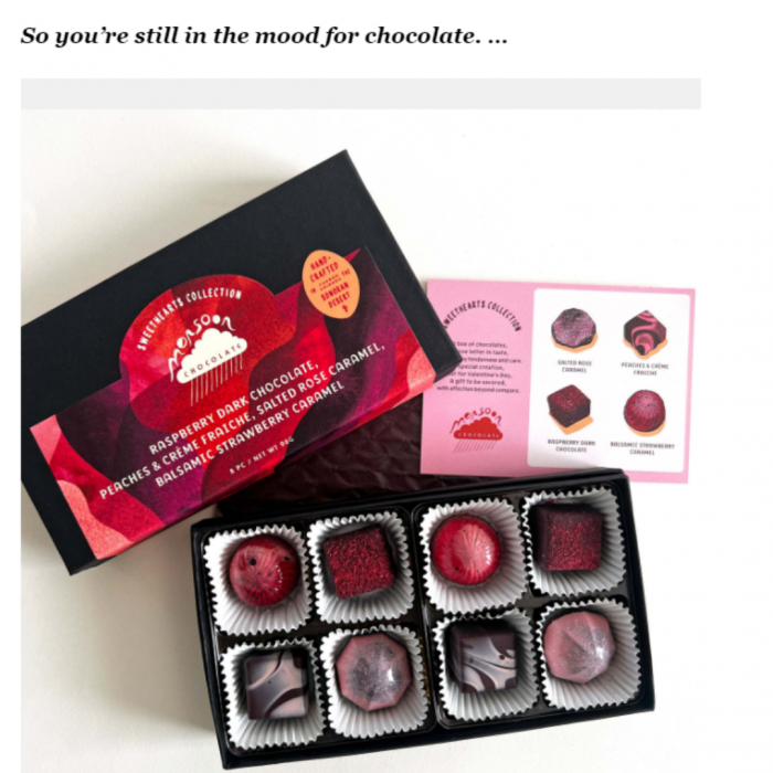 When Bloomberg does an article about anti-chocolate Valentine’s Day gifts but includes only one chocolate brand, Monsoon Chocolate (because it is THAT good!), you know you’ve hit gold!