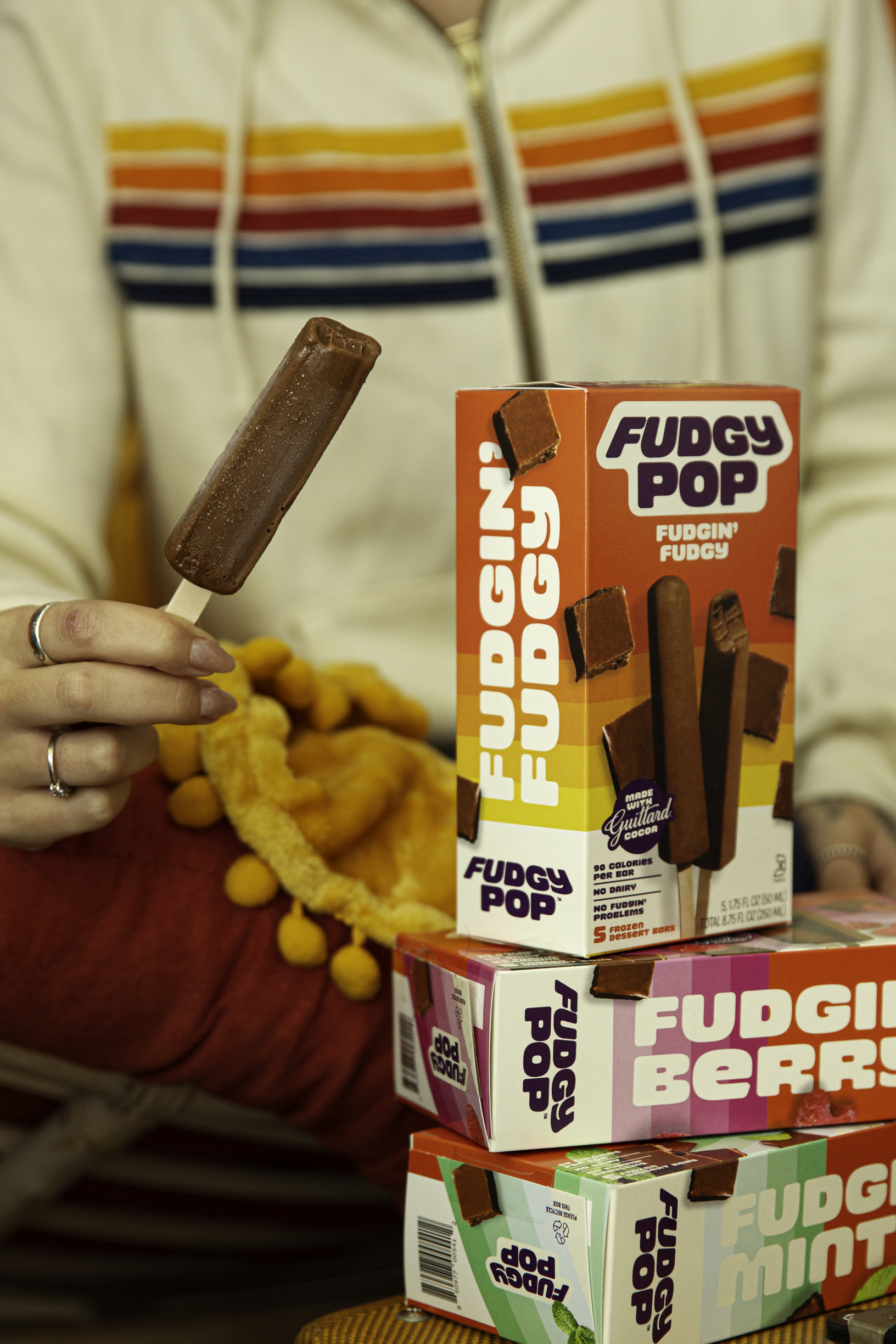 We just love the nostalgia of ice cream. Kids don’t think about calories or guilt when it comes to dessert, it just brings joy. Deborah and I were inspired by the love of chocolate to make the fudgiest fudge bar on the market, and as adults we looked back to the original jello pudding pops that brought the idea of frozen fudge on a stick to the country. It was so simple yet so revolutionary for the time, how fun and satisfying it was to eat an ice pop of soft frozen fudge. We wanted to remind everyone else of the simpler times, if only for a few minutes while they enjoy a FudgyPop, we wanted to re-spark some of that simple joy.