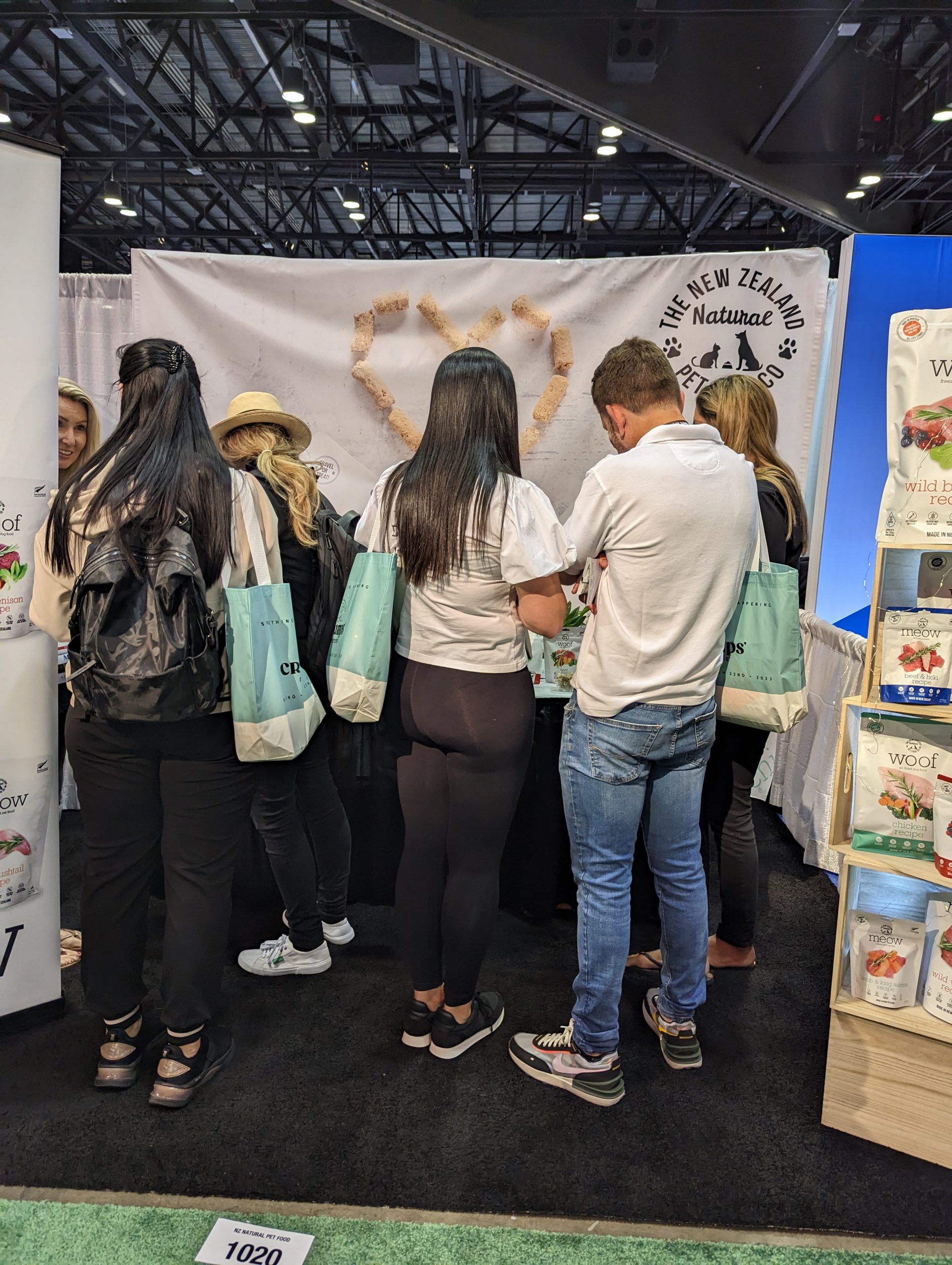 The New Zealand Natural Pet Food Co. drew a crowd at their booth showcasing their high-protein pet food blends. Their dog food features 90% meat, organs, and bones. Their cat is almost entirely made from those high-protein ingredients.