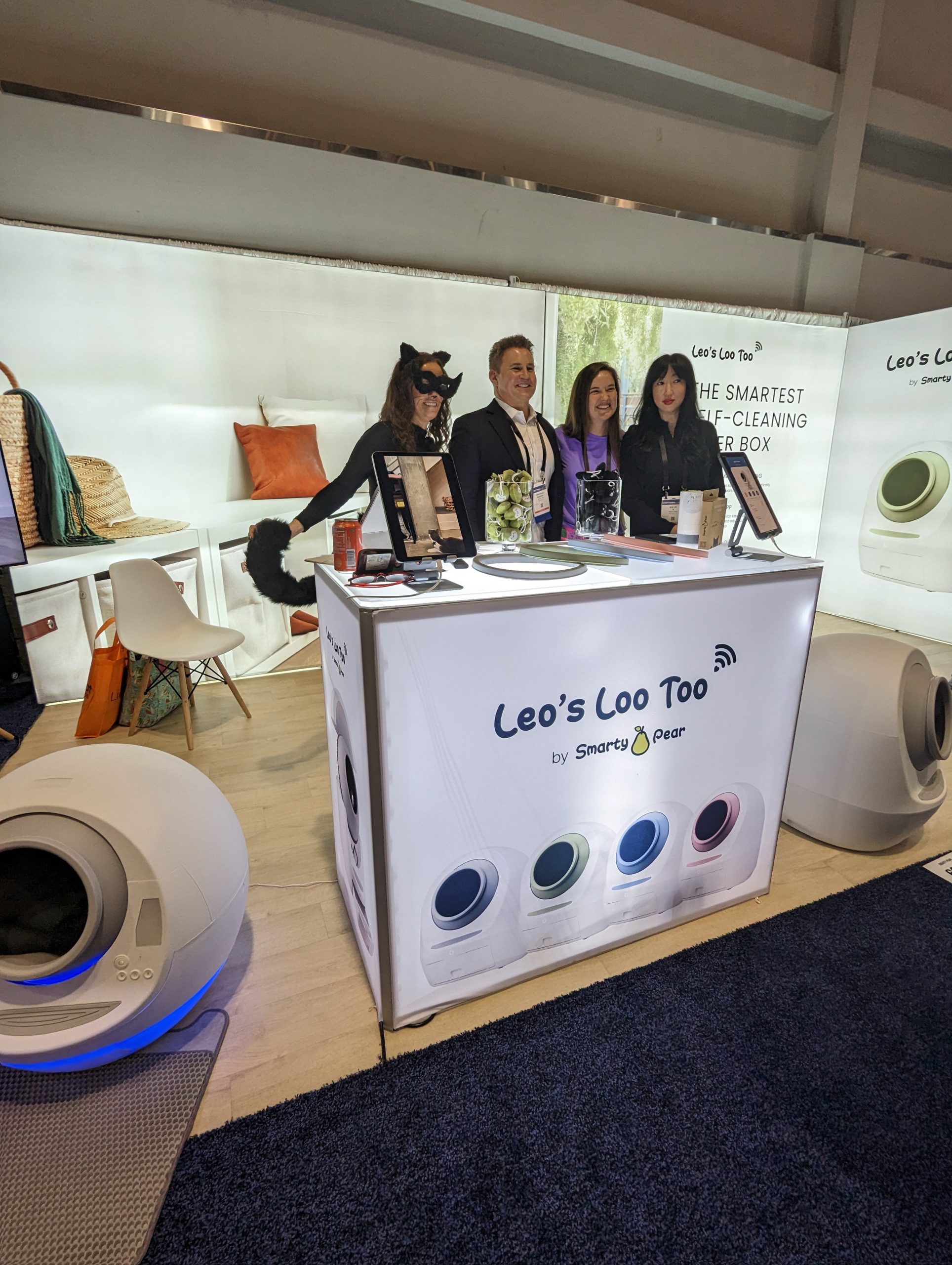 The team from Smarty Pear shows off their smart litter boxes and techy cat toys to buyers from pet industry retailers all over the world.