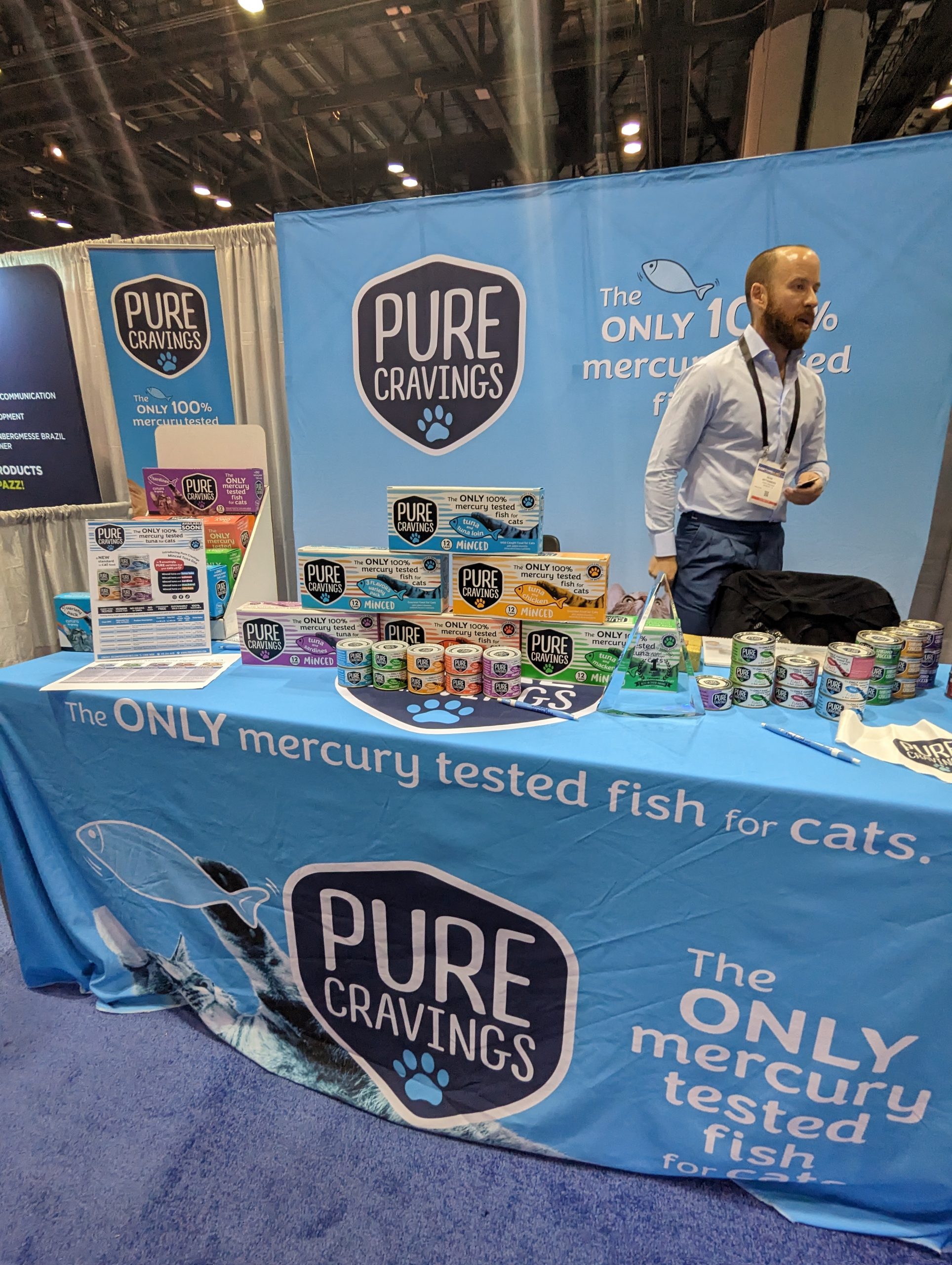 Several pet food brands showcased fish as a health-focused ingredient. I saw several booths marketing fish treats, foods, and supplements. PolkaDog caught my attention with its fun branding and packaging. Meanwhile, Pure Cravings focused on safety with their showcase of the only mercury-tested fish for cats.
