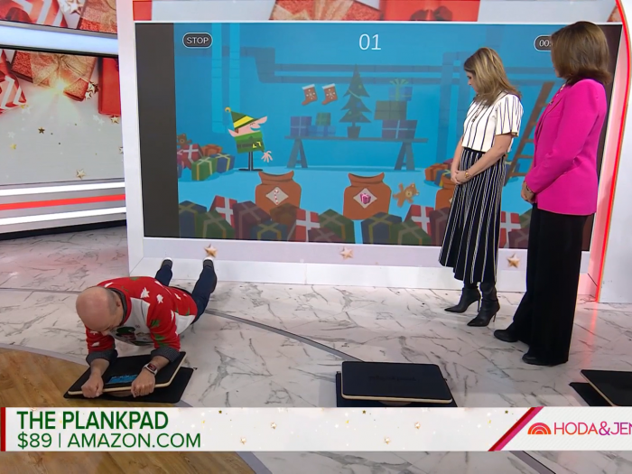 Our client Plankpad is the first ever plank-based bodyweight trainer that uses interactive games to help you plank longer! It’s visually fun to demo so I thought it would be perfect for this holiday segment and I pitched it and lucked out! We had a planning meeting with Steve and we suggested that he use the holiday game called ‘Gift Rush’ and stream it to a TV so the viewing audience can see what he sees on his device while playing. Again, everything is up to the set decorators and logistics team at the network and depends on what they can do that day–but that’s exactly what they did! Not only did we get a big screen behind Steve on The TODAY Show with our logo and product photo while he was introducing the segment, but they also chose to film him doing Plankpad when they did the break to commercial before the segment ran. I understand that Plankpad sold 700 units in one day and they rose from #60 to #2 on the list of balance boards on Amazon! We call this PR Gold!