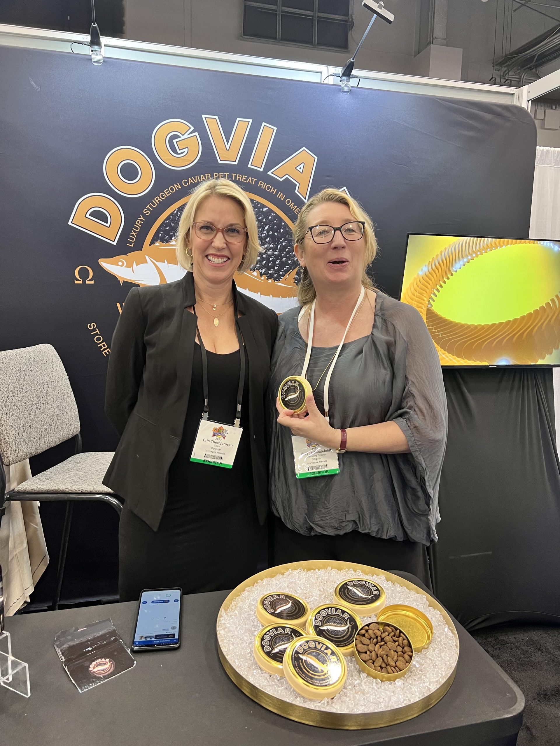 The most popular products were probably natural pet supplements and food. So much to see–I skipped lunch and grabbed what I was promised was a “human grade” cookie so I didn’t have to stop. Human-grade food was hot as were different types of protein from crickets to Dogviar (sturgeon caviar that’s not only decadent but super good for your pup). My dogs love peanut butter–so Paw Power’s Dawg Butter was a standout for sure. It was gadgets and toys galore and I even did a little shopping for myself at the Diphda booth featuring luxury matching jewelry for pets and their owners.